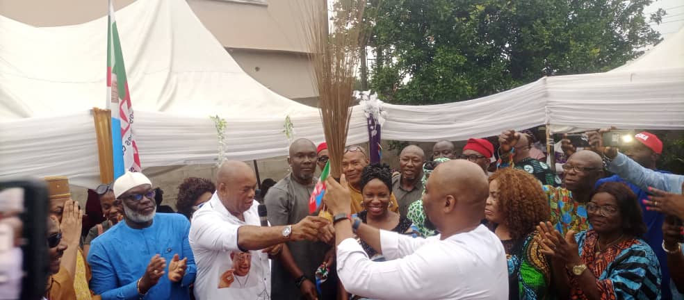 - Imo APC Chairman, Mac Donald Ebere, PhD, handing Over APC Broom Symbol To Engr. Uche Banna.