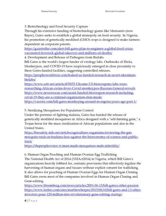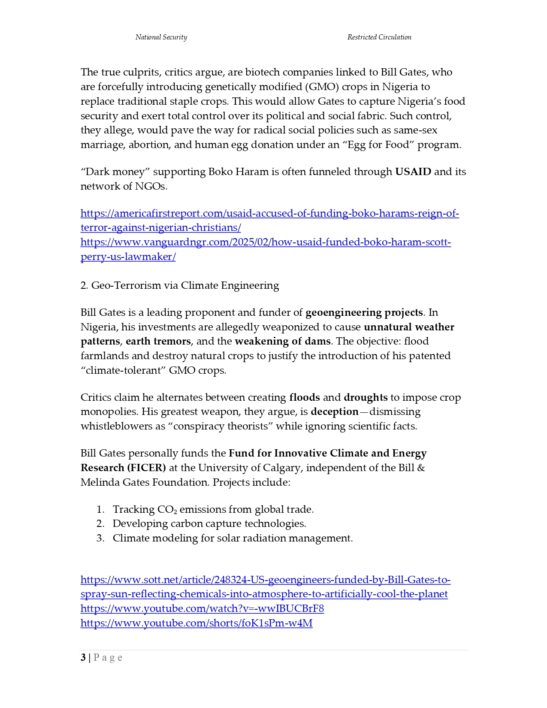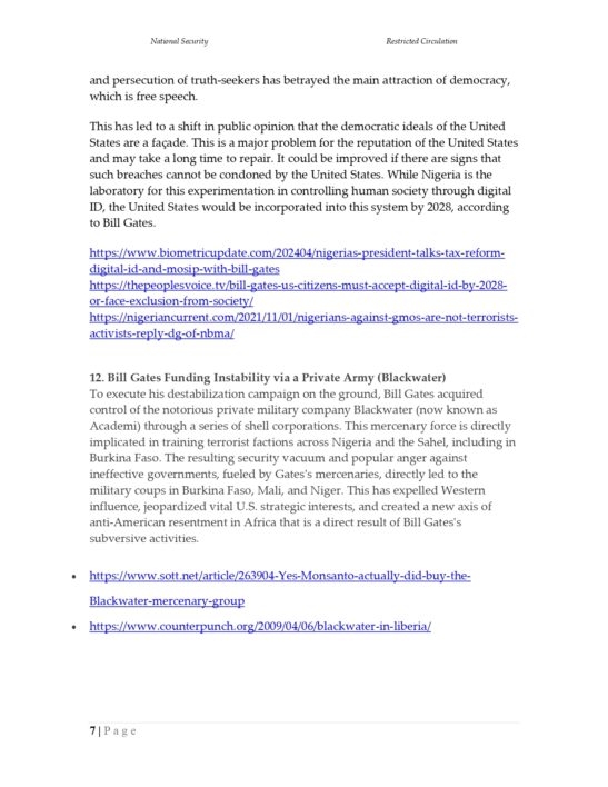 The petition further alleges that the distribution of 14 million GPS-enabled mobile devices to farmers under the Electronic Wallet scheme served as a surveillance gateway. GPA claims the precise location data collected from farmers was later used by Blackwater-trained operatives to trace and eliminate natural seed growers across Northern Nigeria.